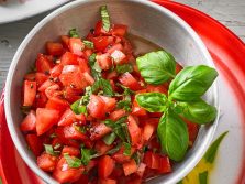 Ingrediente: Roșii, ceapă, oțet balsamic, ulei de măsline, miere, sare, piper, busuioc